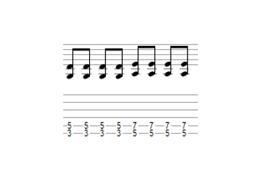 ほとんどがパワーコードで構成されているのでTAB譜に表記されているとおりに弦を押さえて耳で聴いたとおりのリズムで鳴らせば、十分演奏ができるはずです。