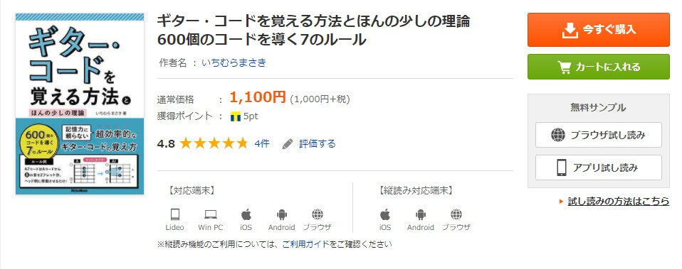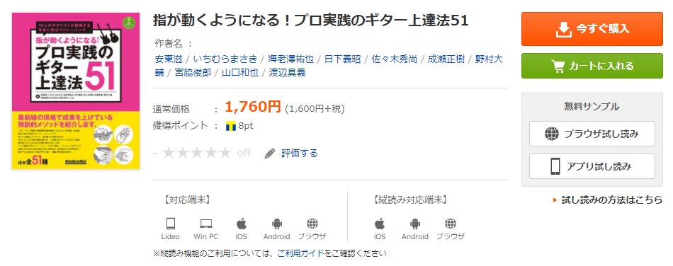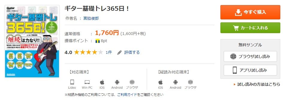 ブックライブは漫画や雑誌、ラノベや写真集など101万点以上もの書籍を配信している電子書籍サービスです。当然ギターの教本も多数収録されています。