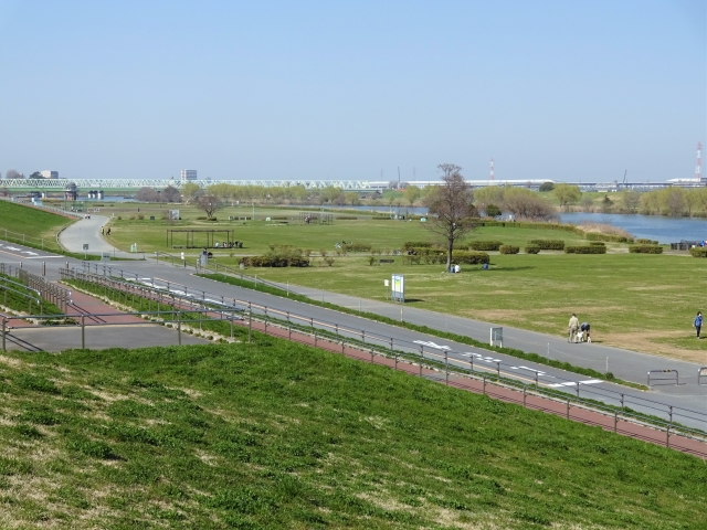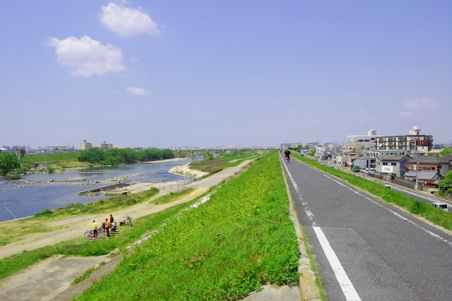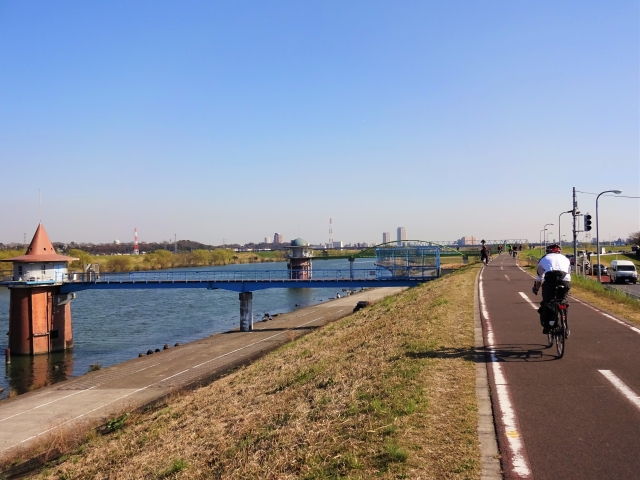 河川沿いのサイクリングロードは走りやすく見通しもいいので、晴れた休日ともなるとたくさんの方がサイクリングを楽しんでいます。
