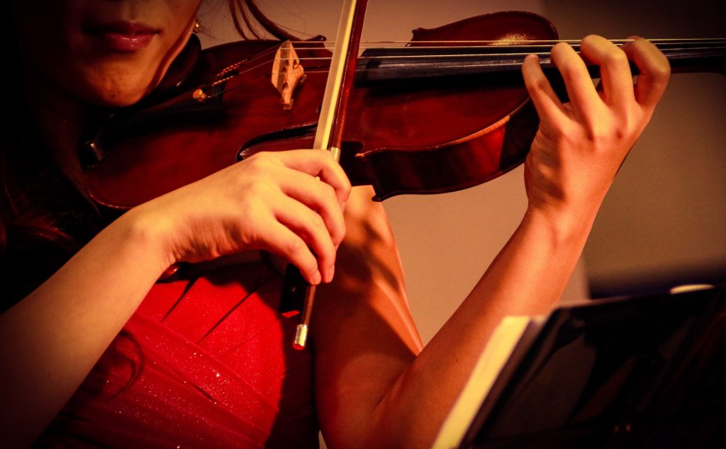 バイオリンは弦楽器の中でも最も高音を出す楽器なので、音が目立ち、主旋律で曲を演奏することが多いです。