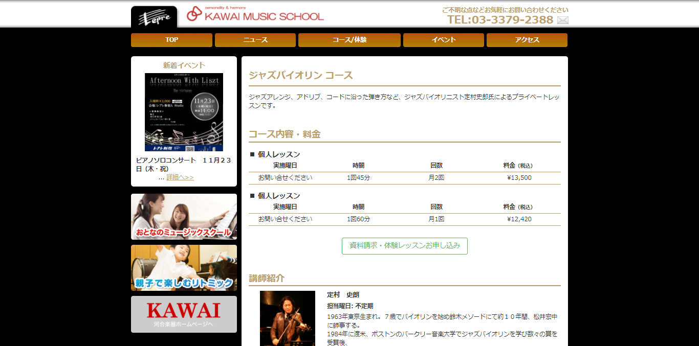 こちらからKAWAI MUSIC SCHOOLのジャズバイオリンコースを確認できます。