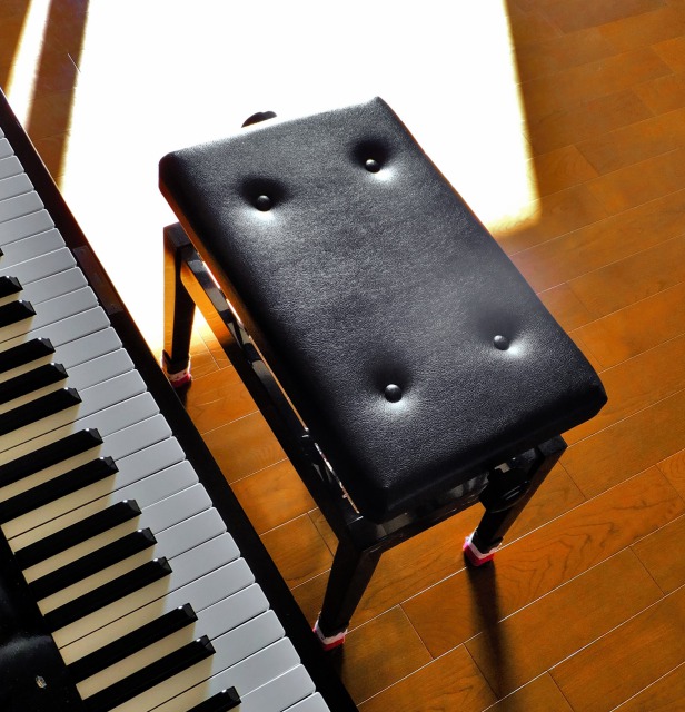 また、椅子が低すぎると、鍵盤が上に感じ、腕や肩に不要な力が入ってしまいよい演奏ができません。椅子が高すぎると脱力ができず、ペダルを上手く踏むことができなくなります。