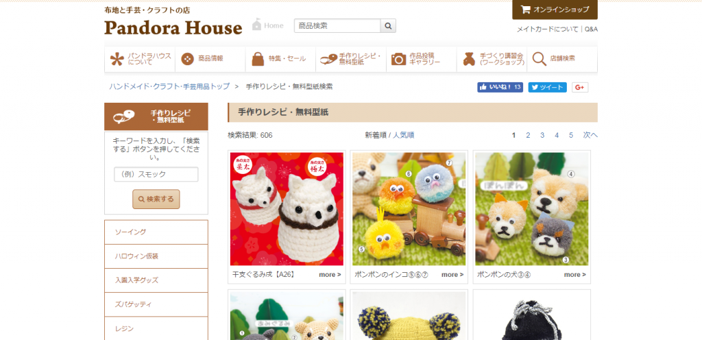 手芸店『パンドラハウス』のサイトでは作品投稿ページもある