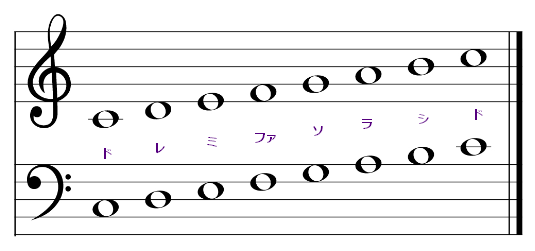 その2つを合わせて音部記号と呼び、音符に音の高さの概念が生まれます。