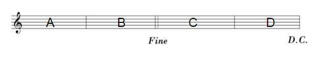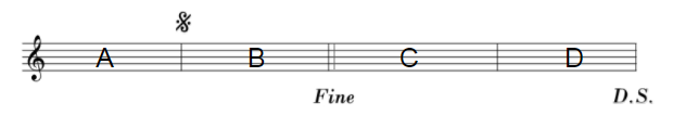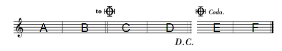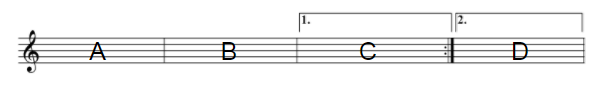 上の表でご紹介した反復記号の実際の見方をみてみましょう。