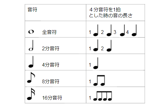 ※画像では音符の長さを表していますが、休符の長さも同じです。