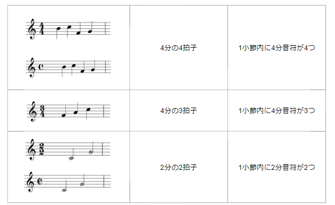 分母には基準となる音符の種類、分子には1小節の中にどの音がいくつ含まれるかを示します。