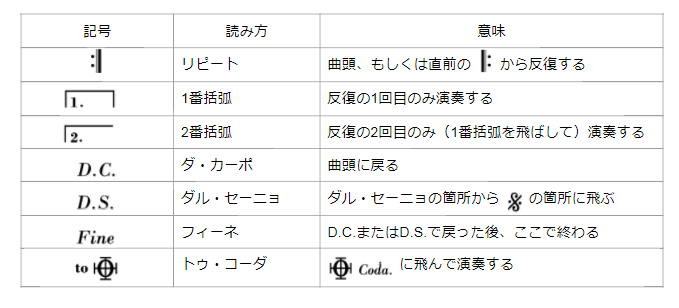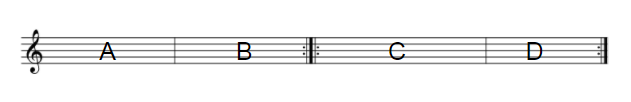 楽譜を繰り返して演奏することを表す記号を反復記号と呼びます。