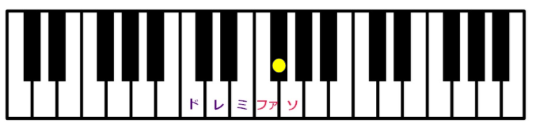 例えば、楽譜上に『ファ』の音の左横にシャープの記載があれば、画像の黄色い丸の部分を示します。