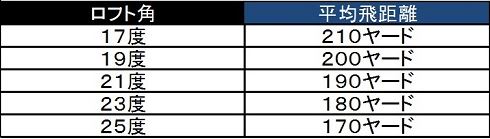 ユーティリティには、17度、19度、21度、23度、25度という5つのロフト角があります。
