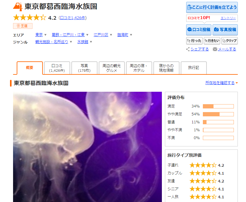 それを考慮してか、近隣施設の情報をHPに記載している水族館も多くなっています。