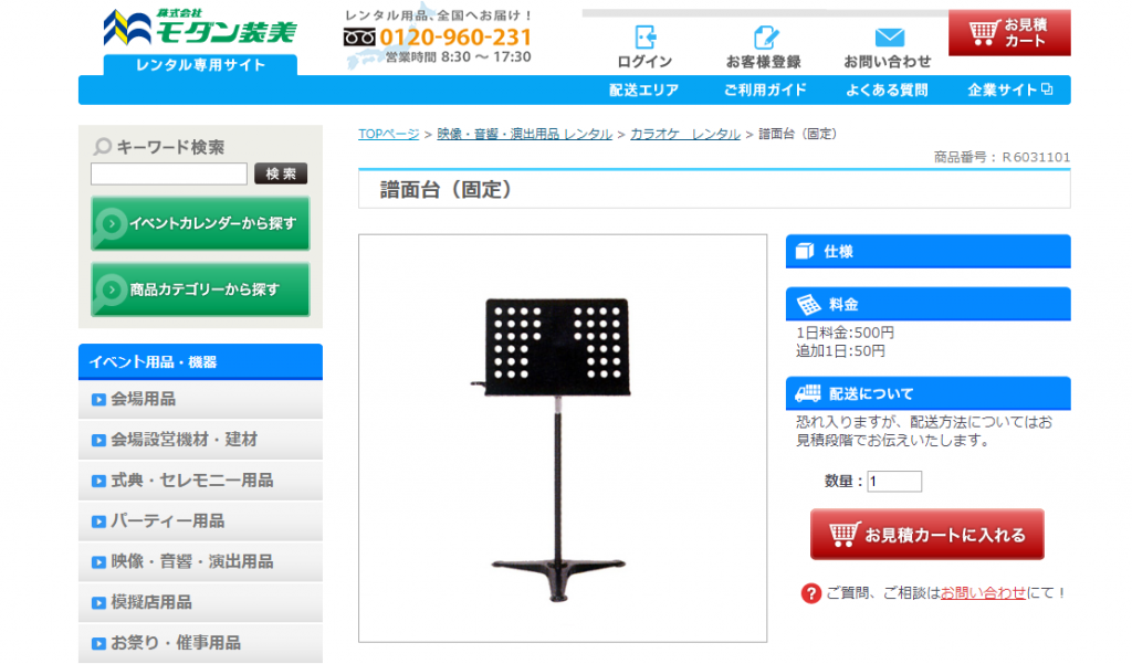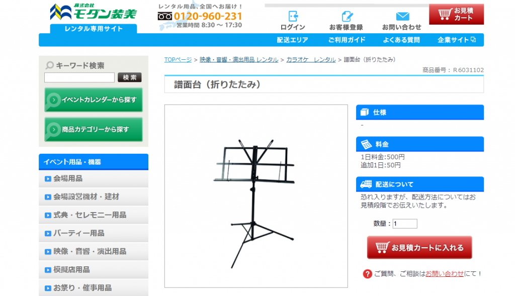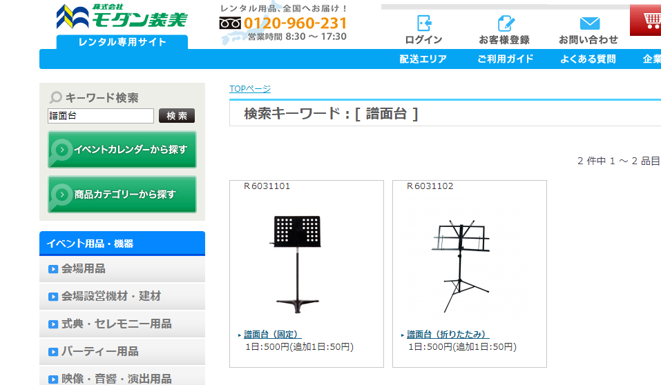 模擬店用品やイベント用品、運動会用品など、様々な商品をレンタルしているモダン装美は、譜面台のレンタルも行っています。