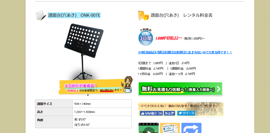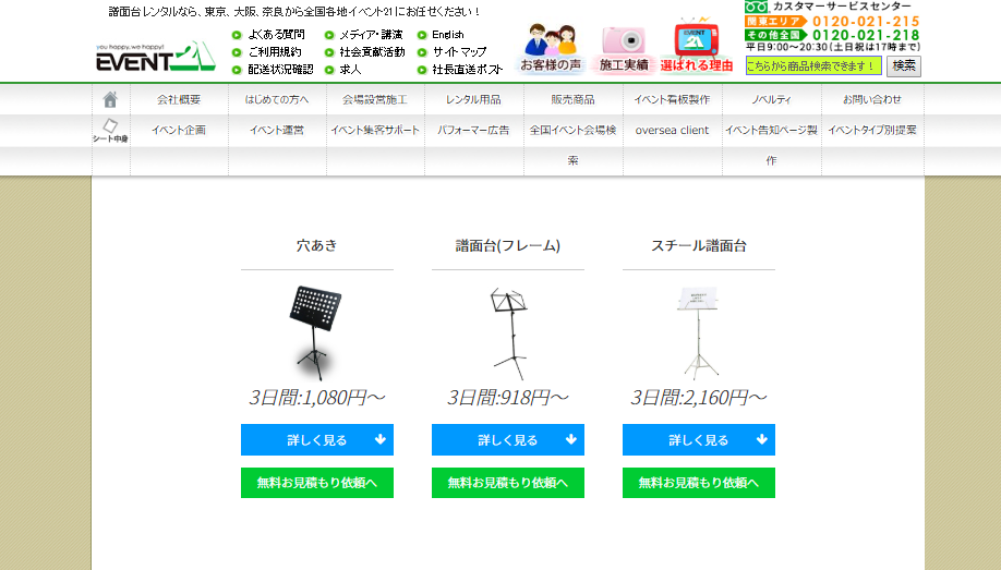 イベント21は、イベント関連の道具や楽器、譜面台など、様々な商品のレンタルを行っている会社です。
