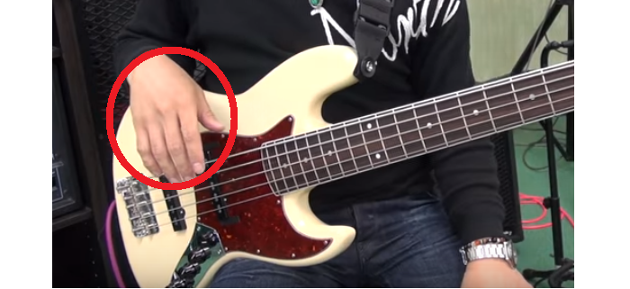どの弦を弾くときも親指をピックアップに固定している人もいますし、4弦のときはピックアップ、1~3弦のときは弦の上という混合タイプの人もいます。