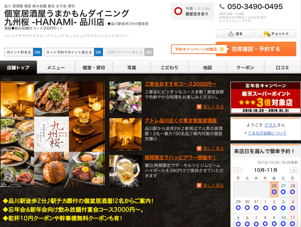 「個室居酒屋うまかもんダイニング 九州桜 ‐HANAMI‐ 品川店」は、JR品川駅から歩いて2分の場所に位置する個室居酒屋。