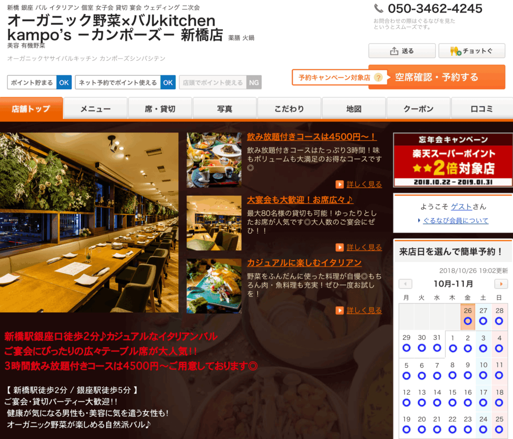 今年の年末は、「オーガニック野菜×バルkitchen kampo’s 新橋店」で忘年会を開いてみてはいかがでしょうか?