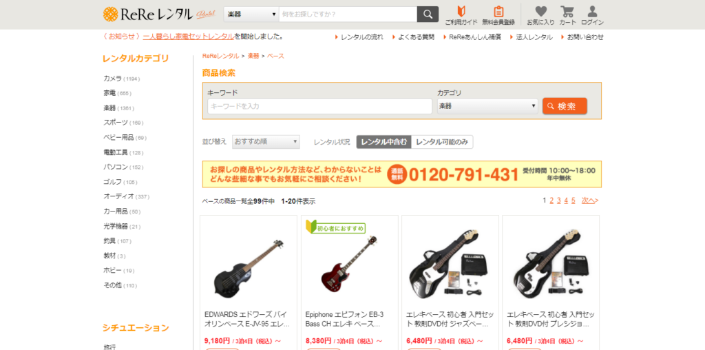 購入後にイメージと違ったとならないためにも、ベースのレンタルで色々なベースを試してみるのがおすすめです。