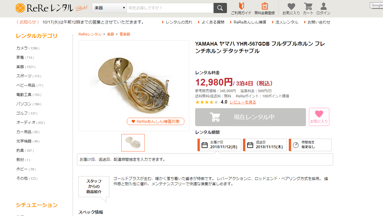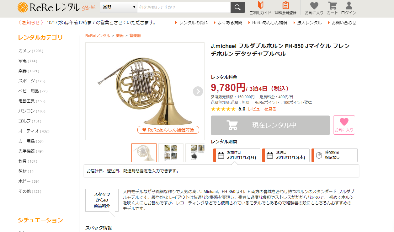 ReReレンタルでフレンチホルンデタッチャブルをレンタル