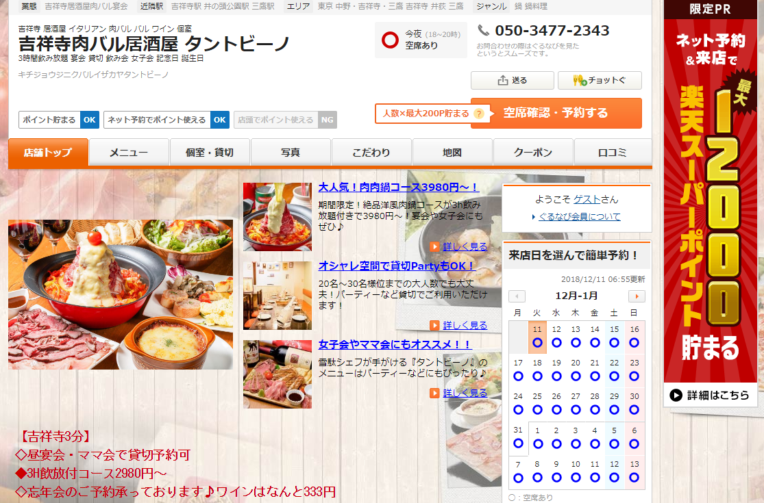 [LocketsGurunavi shopid=”g280305″] 吉祥寺肉バル居酒屋 タントビーノ【平均予算3,000~4,000円】都内のレストランと居酒屋