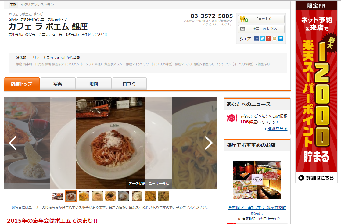 [LocketsGurunavi shopid=”7216433″] カフェ ラ ボエム 銀座ITALIAN RESTAURANT & BAR GOHAN 八重洲店