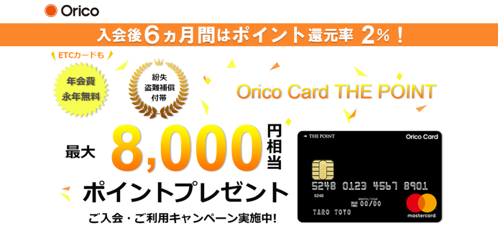 Orico Card THE POINTは、通常のポイント還元率は1%と高いですが、発行から半年は1%追加されて計2%の高還元率を誇ります。