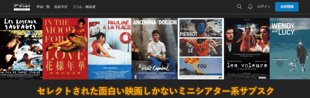 - ザ・シネマメンバーズ ヨーロッパ映画やインディーズ作品、ミニシアター系映画を多く取り扱う、通好みのサブスク。映画館では観られなかったような名作にも出会えるサブスク。