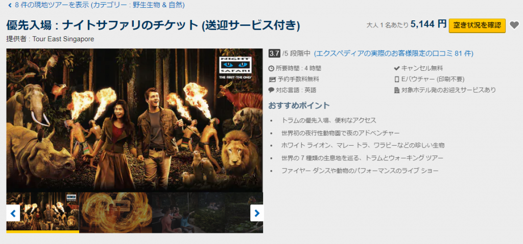 Expediaでもシンガポールのナイトサファリの予約が可能です。