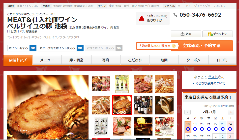 [LocketsGurunavi shopid=”g881502″]2.MEAT&仕入れ値ワイン ベルサイユの豚 池袋