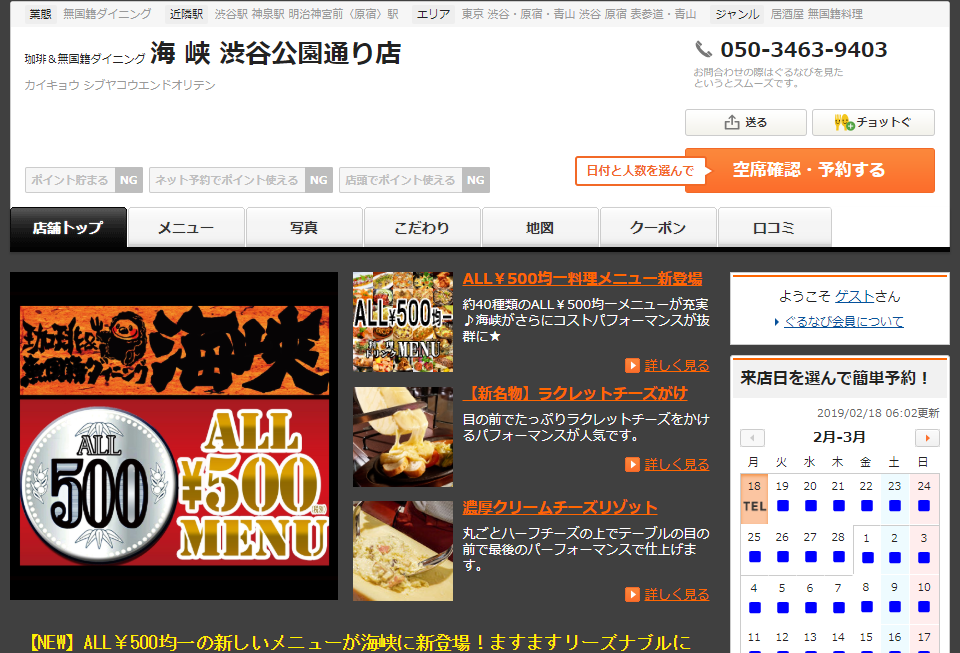 [LocketsGurunavi shopid=”g600108″]3.海峡 渋谷公園通り店