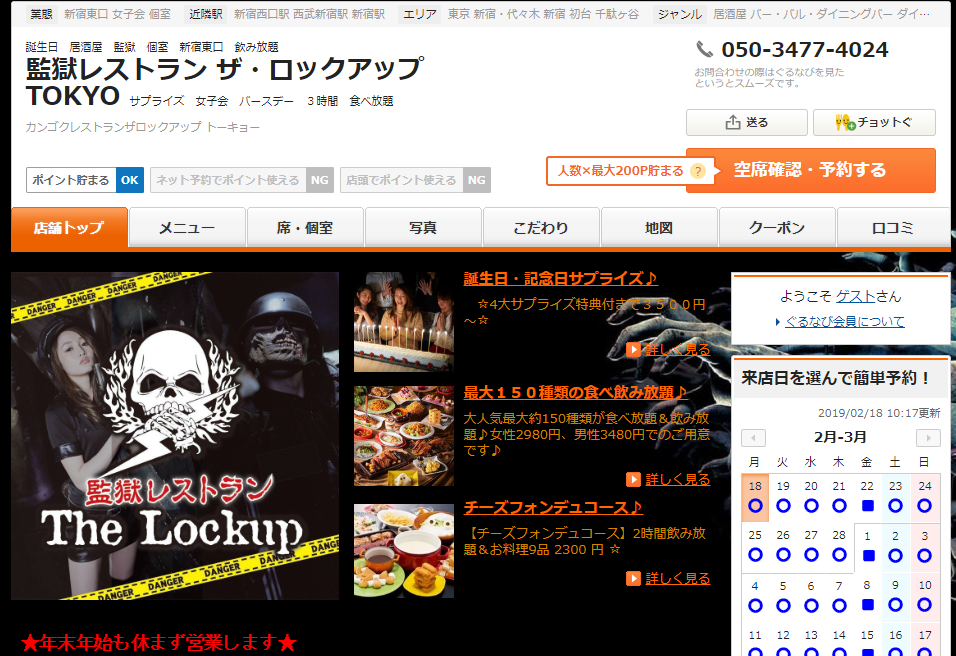 [LocketsGurunavi shopid=”g498845″]4.監獄レストラン ザ・ロックアップTOKYO