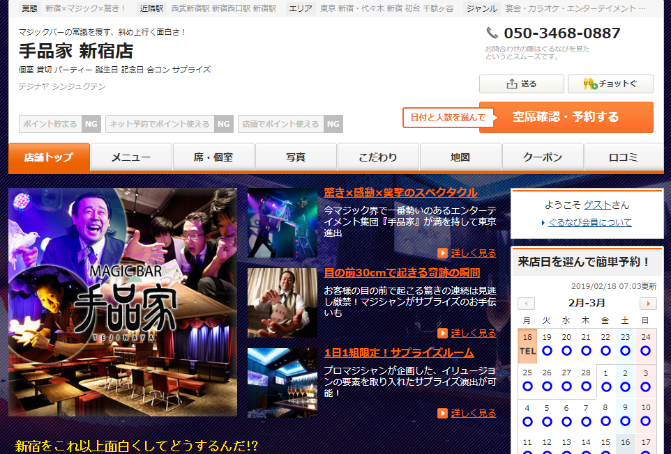 お笑いやエンターテイメントが好きな人が多いなら「手品家 新宿店」はいかがでしょうか。