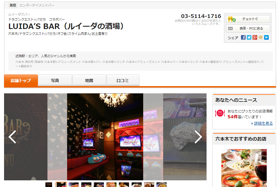 RPGゲーム愛好家にはたまらない場所といえば「LUIDA’S BAR」。「LUIDA’S BAR」は、カラオケとハニートーストが有名なパセラ六本木1Fにあるコラボバーです。