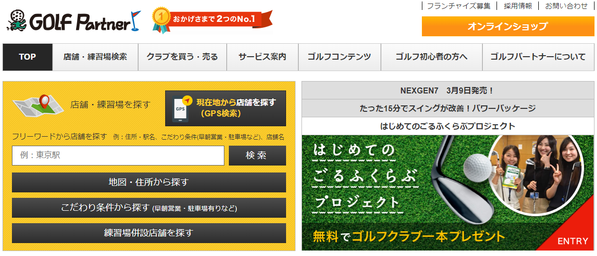 ゴルフ用品の専門店ゴルフパートナーは実店舗も存在します。実店舗では練習場も合わせ持っており、色々なものを見比べて購入することができますが、ネットショップは豊富な品揃えが魅力になります。