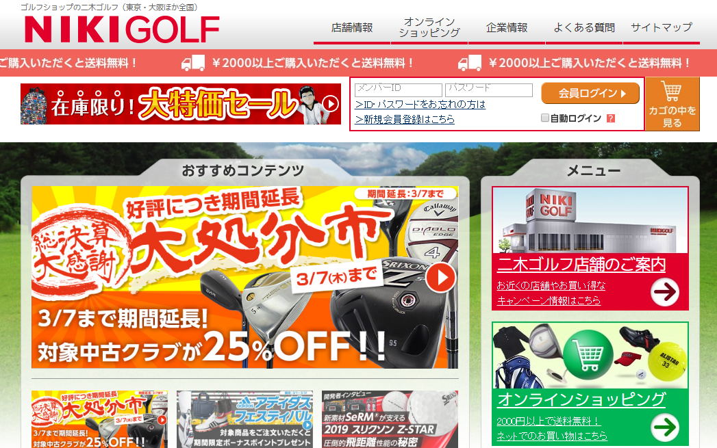 大手ゴルフショップが運営しているサイトで、2,000円以上購入すると送料が無料になります。