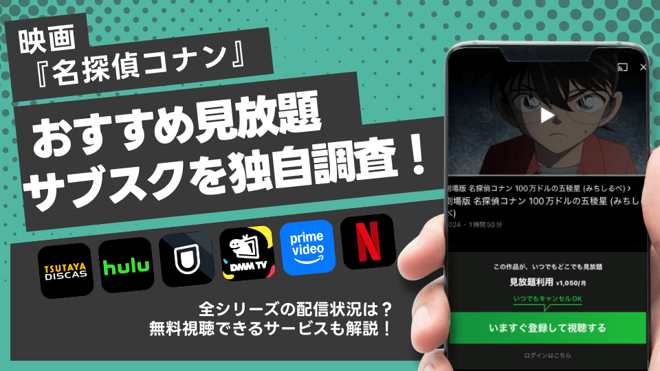 本記事では、『映画 名探偵コナン』シリーズを視聴できる動画配信サービス、DVDレンタルサービスを紹介しました。 2025年9月以降は、映画『名探偵コナン』は各サブスクで配信終了しています。 今すぐ『コナン』の映画を見たい場合は、TSUTAYA DISCASのDVDレンタルを利用しましょう。- 『100万ドルの五稜星(みちしるべ)』が見られる!