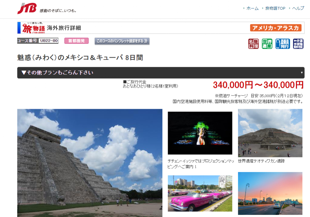 ハバナやバラデロを始めとするキューバの各都市と、メキシコを周遊するツアーです。
