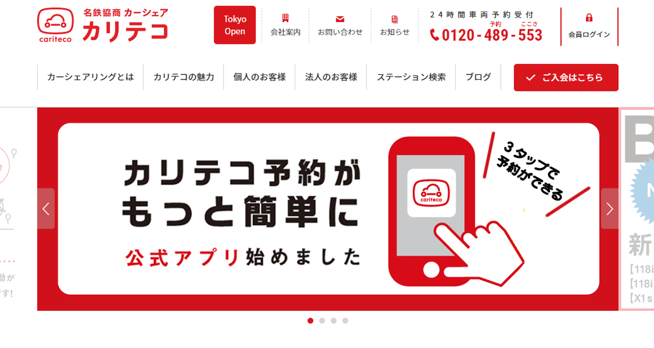 カリテコは、利用登録を行った会員同士で車をシェアするサービスです。