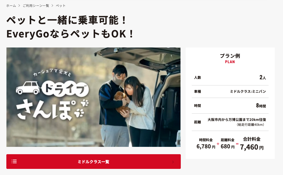 犬に優しいカーディーラーとして知られるホンダが運営する、カーシェアリングサービスのEveryGoでは、ペットを同乗してのご利用が可能です。