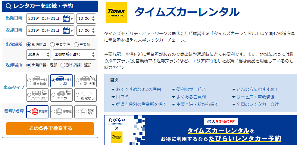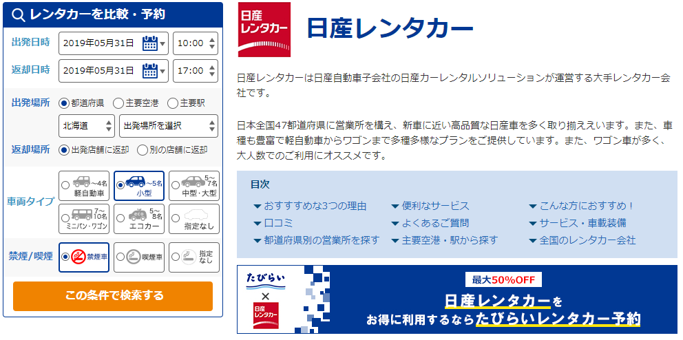 ビギナーズでは当日でもレンタル可能なおすすめレンタカー会社安いレンタカー会社の比較もまとめています。ぜひ参考にしてみてください。