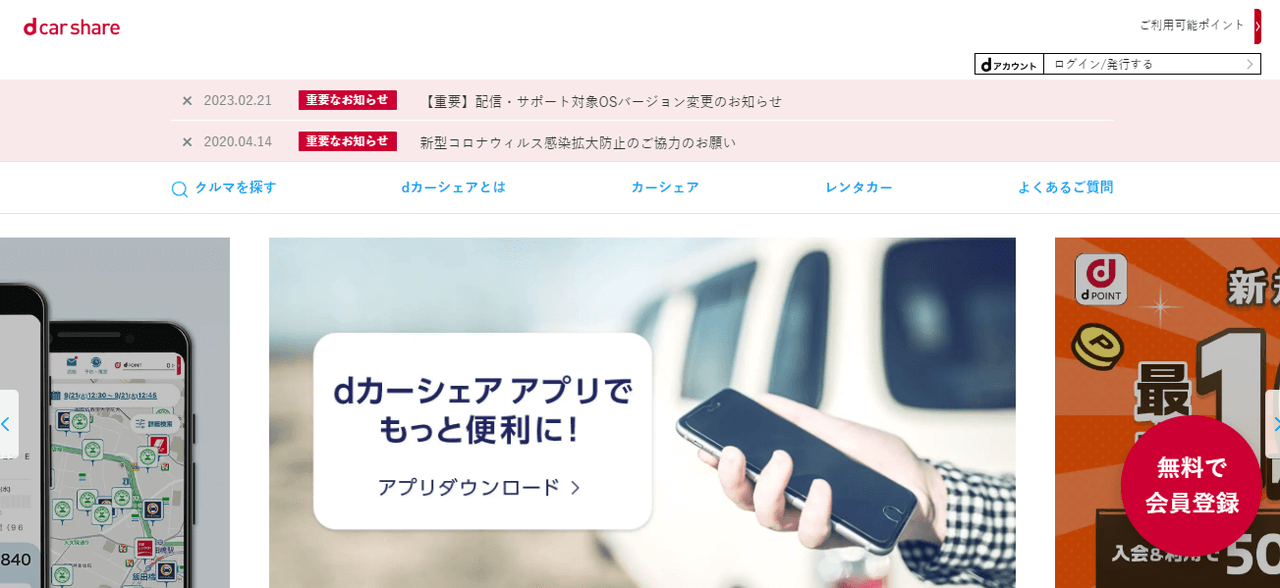 dカーシェアはドコモが提供するサービスですが、無料会員登録をするだけで全てのサービスを使えるのでドコモユーザー以外も利用できます。