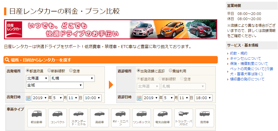 格安レンタカーとして有名なニコニコレンタカー、ガッツレンタカーは非対応となっております。規則として貸し出しと返却場所は同じになります。ニコニコレンタカーは、走行距離ではなく、利用時間によって変動していきます。ガッツレンタカーは、走行距離に限りがあるので、利用するときは予めグーグルマップなどで距離を計算しておきましょう。