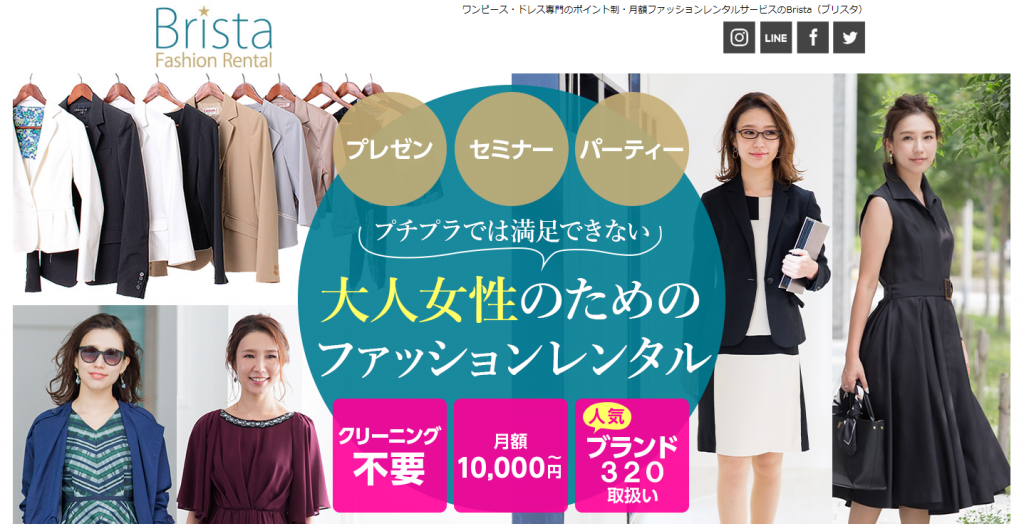 Brista(ブリスタ)』は、JILLSTUARTやBOSCHなどのビジネスやお出かけに使用できる、綺麗めワンピースなどの洋服をメインに展開しています。プランについては、月額レンタルと短期レンタルで選ぶことができます。