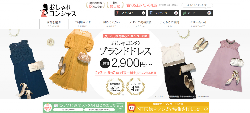 おしゃれコンシャス』は、結婚式やパーティー用のドレス限定の洋服レンタルサービスです。パーティー用のバッグや靴までレンタルできますが、普段着は扱っていません。
