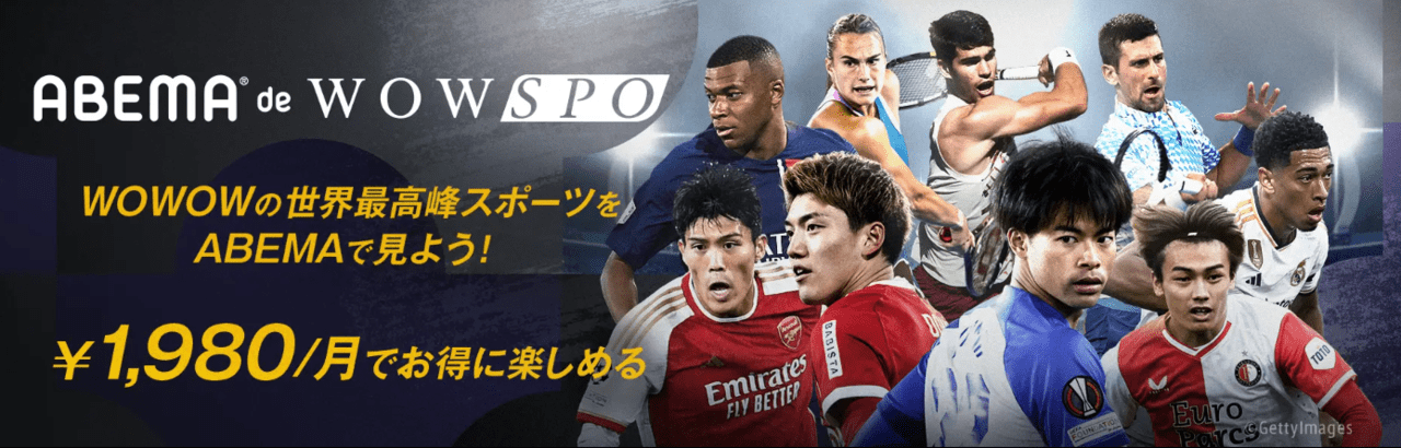 「ABEMA de WOWSPO」は、 WOWOWが配信しているスポーツコンテンツをセレクトしてパッケージにしたABEMAのサービスです。