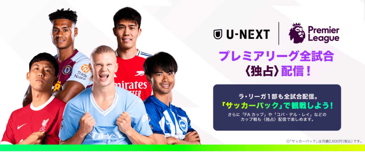 しかし、実力人気ともに世界最高とも称されるプレミアリーグは「U-NEXTサッカーパック」のみの独占配信です。