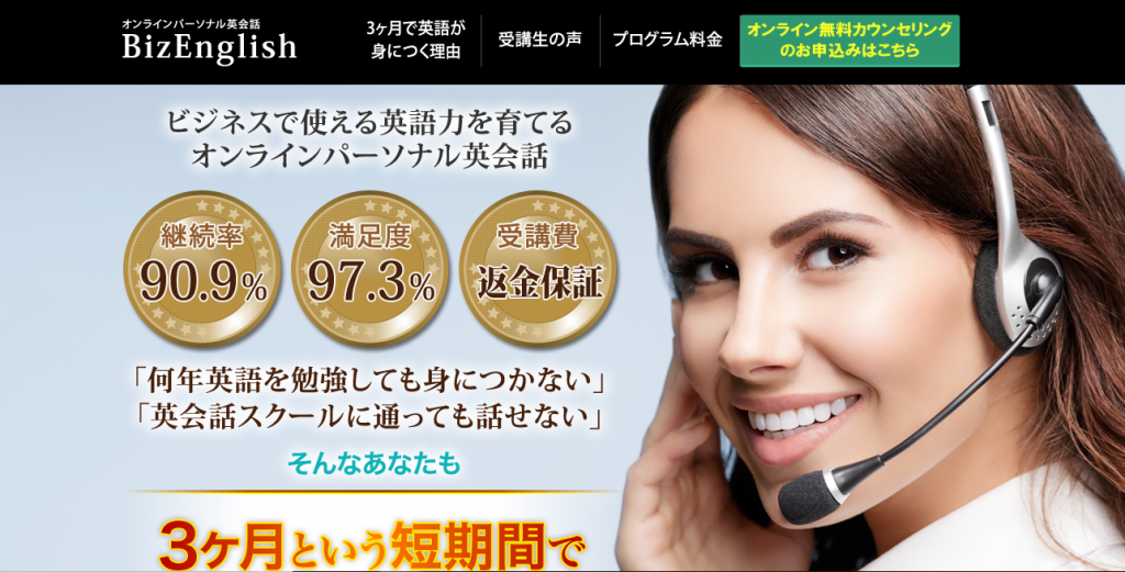もしビズイングリッシュのサービスに満足できなかった場合、3か月のレッスン受講後、受講費を全額返金するという点にサービスへの自信が感じられます。(一括支払い限定特典)