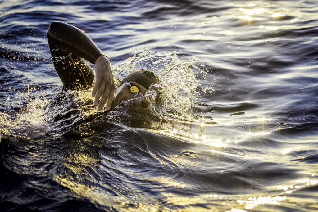トライアスロンのスイムは海や湖などのオープンウォーターでおこなわれるので、水中で体温を奪われないように保温性があり、浮力にも機能性が優れている専用のウェットスーツが必要です。