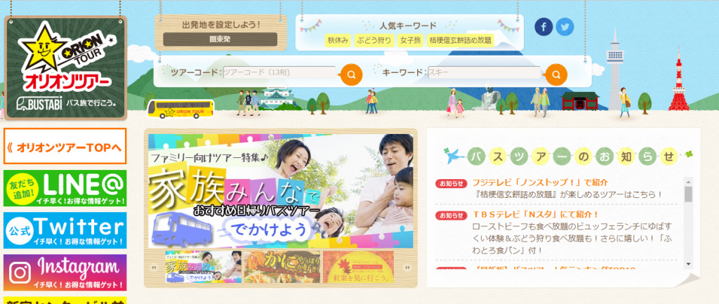 様々なバスツアーを展開しているオリオンツアーは大手旅行会社HISのグループ会社。