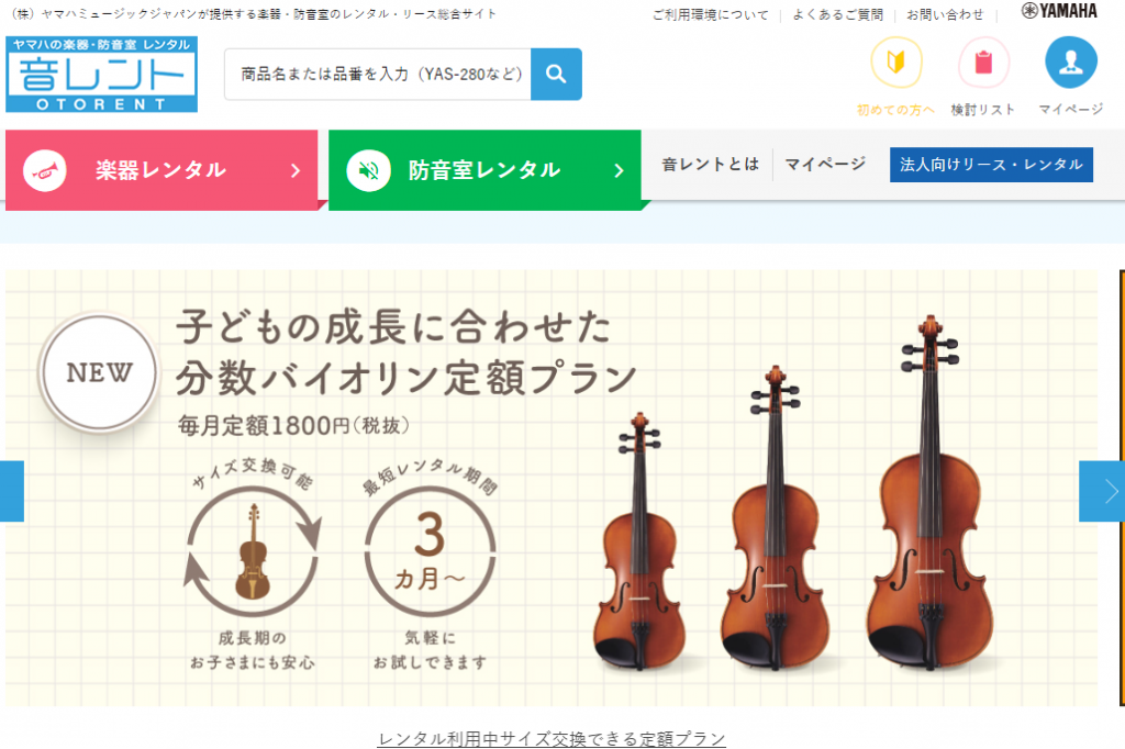 音レント(YAMAHA)の楽器レンタルは、「ロングプラン」「ショートプラン」の2種類から選択する形で、多彩なジャンルの楽器を新品もしくは中古品から選択可能。