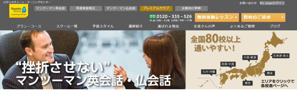 北米・英・豪の4大卒で100%ネイティブの講師を自由に選択でき、とてもわかりやすく英語を教えてくれます。また、東京・横浜にスクールがあり、全て駅から3分以内のところにあり通いやすいのが特長です。